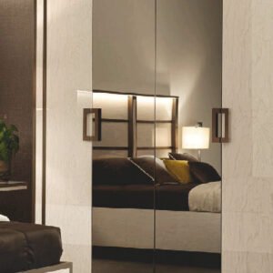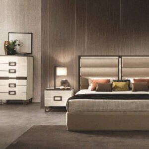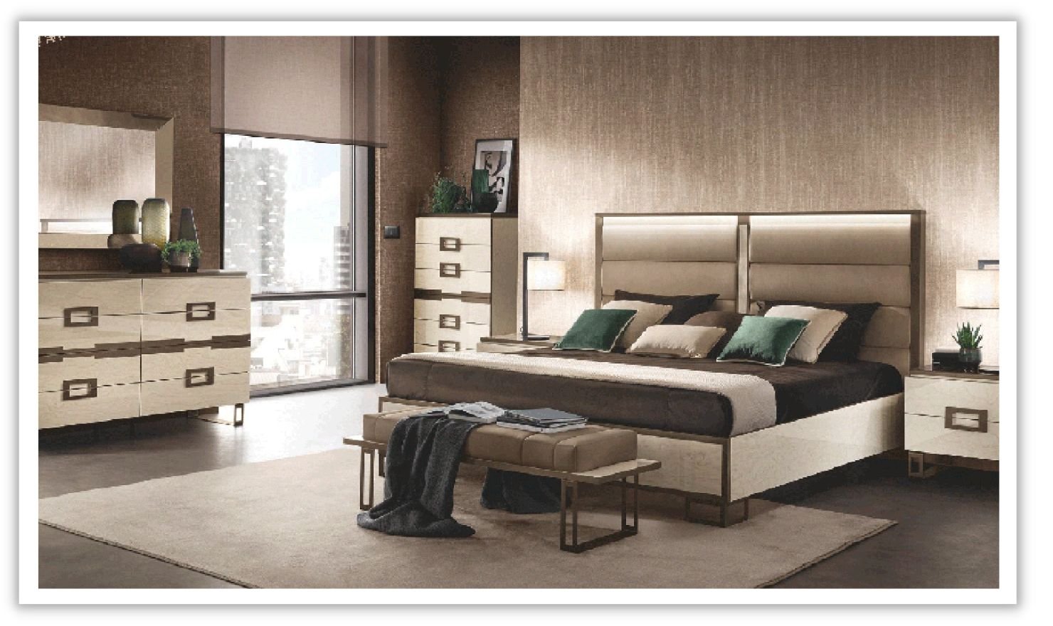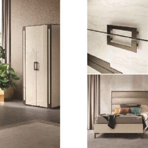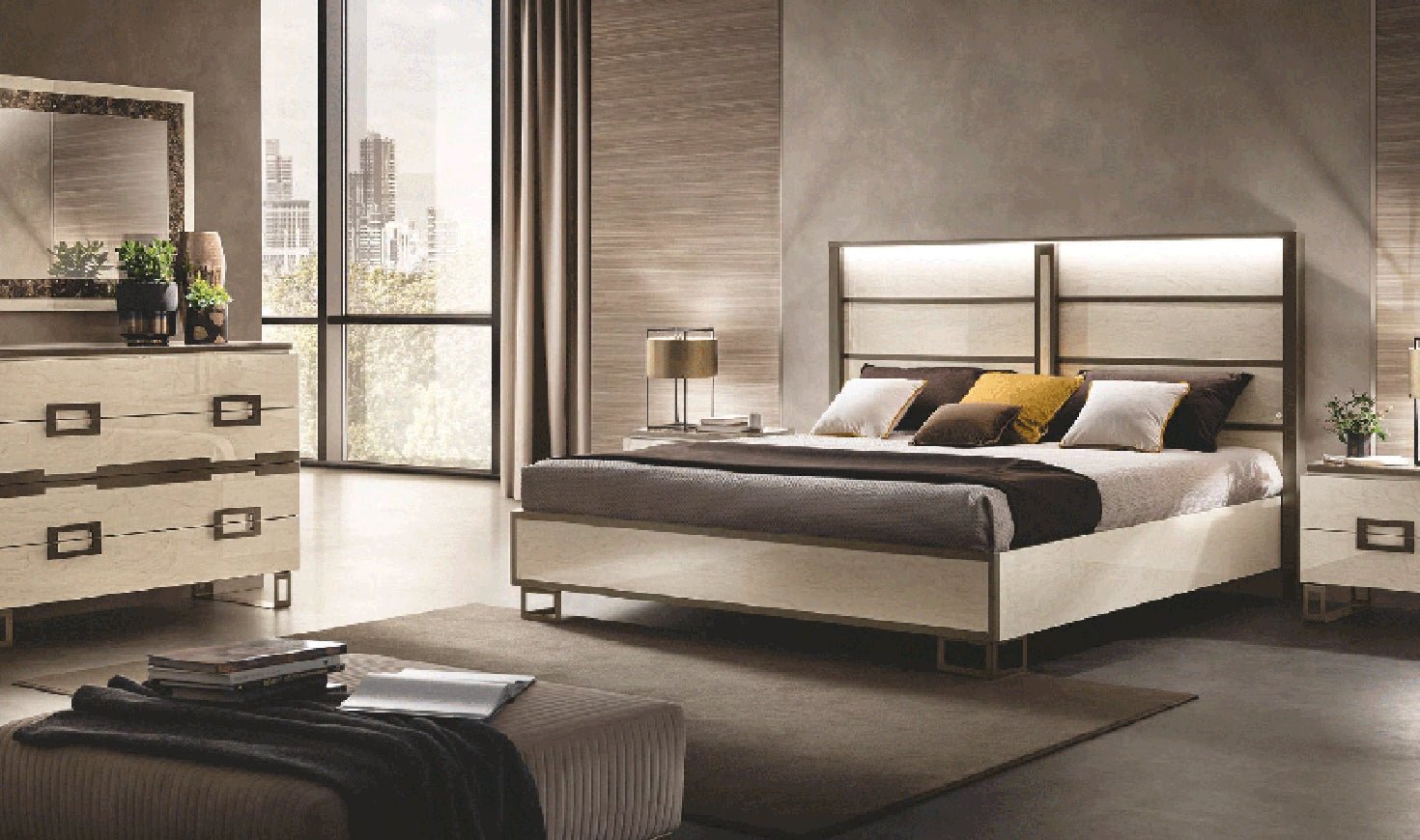 Both solutions (wooden headboard and upholstered headboard) can be customised with an incorporated LED light along the upper frame, and are available with either a wooden bed frame and metal feet or with a matt material texture. [endDescription][Specifications]
