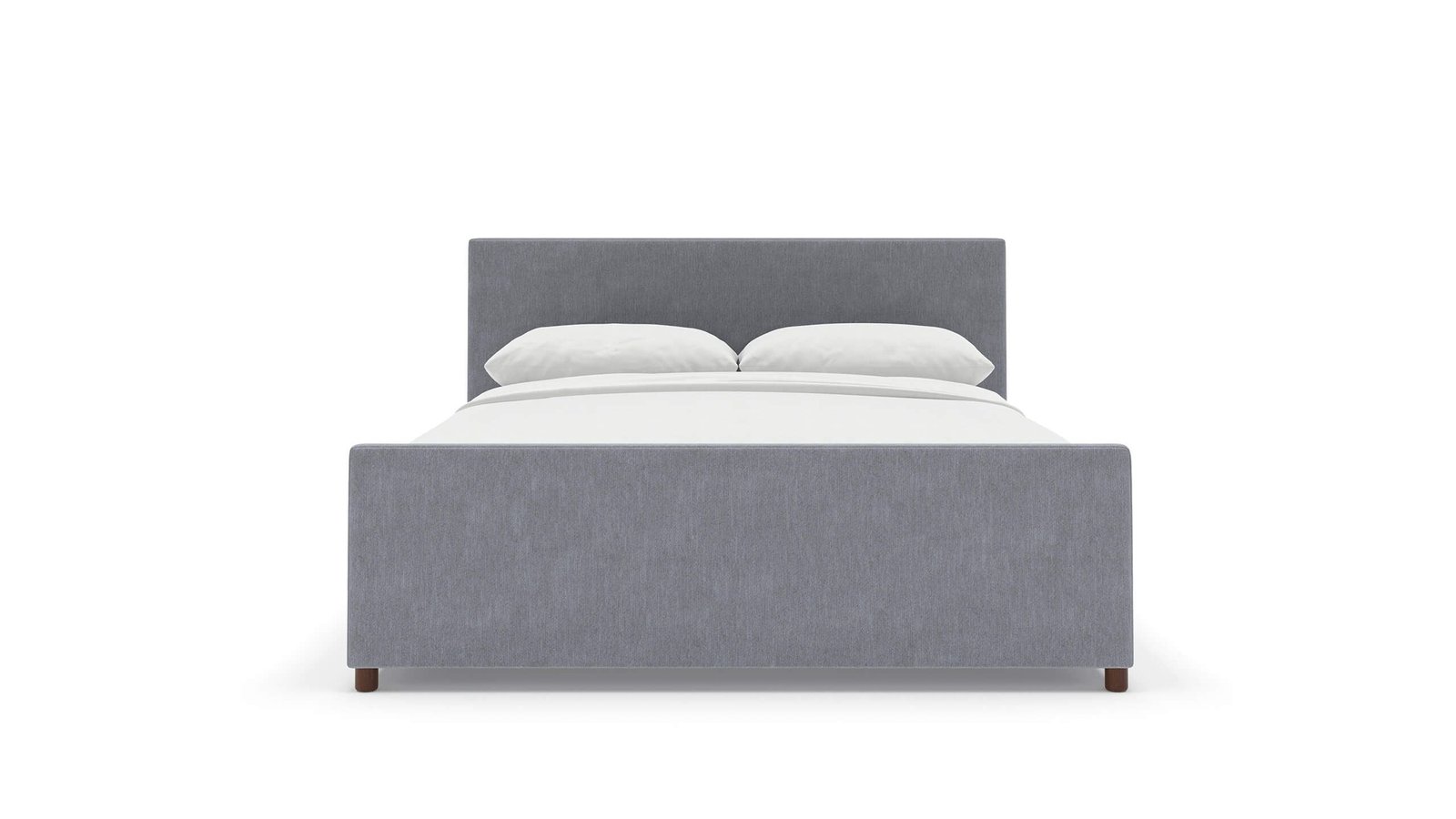 Bringing the best of transitional style to any bedroom, Hayes embodies elegance with its to-the-floor design and contemporary shape. Tailored yet approachable, Hayes offers the perfect balance between sleek right angles with traditional details. Both headboard and footboard effortlessly bookend extra-wide side rails and petite hardwood legs. Made to order to fit your space and style, Hayes comes in five standard sizes from twin to California King with customizable headboard heights and wood finish options.