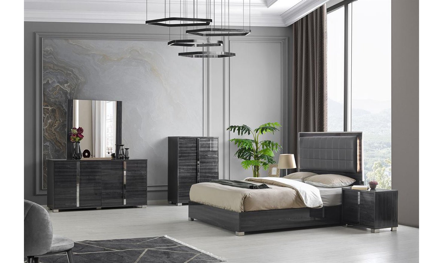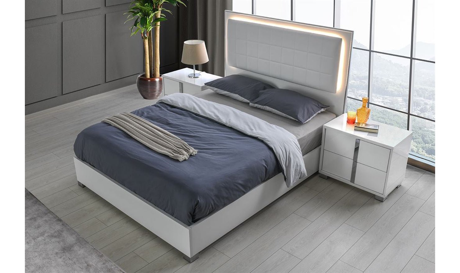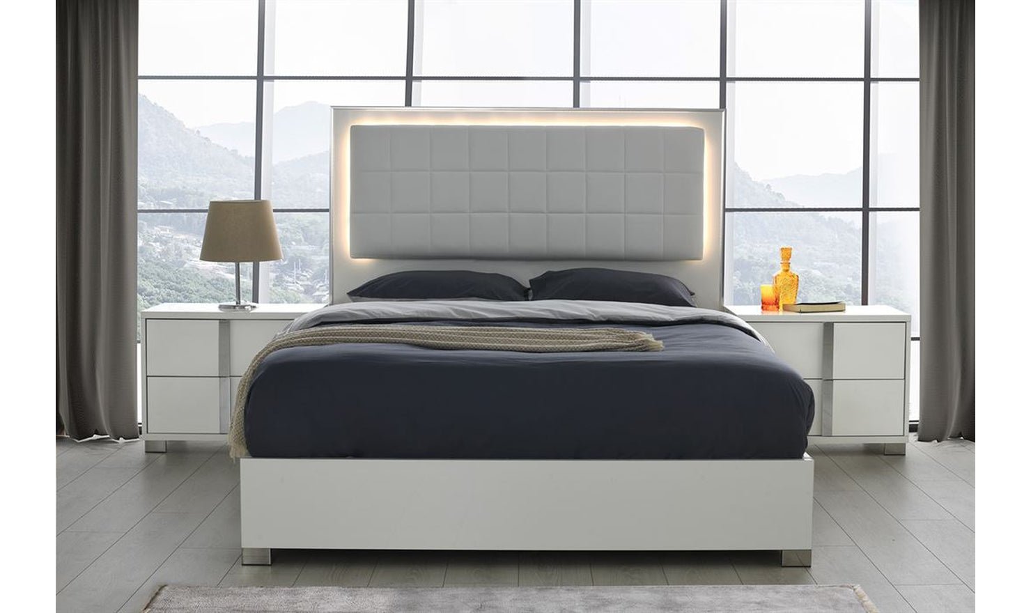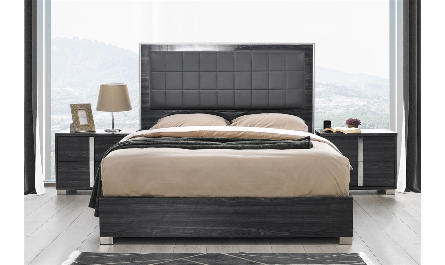 Jennifer Italia Saxe Platform Bed With Box-Tufted Headboard (King/Queen)