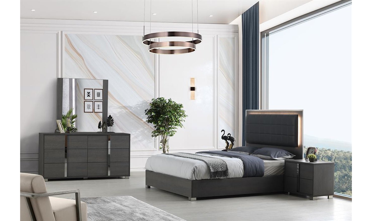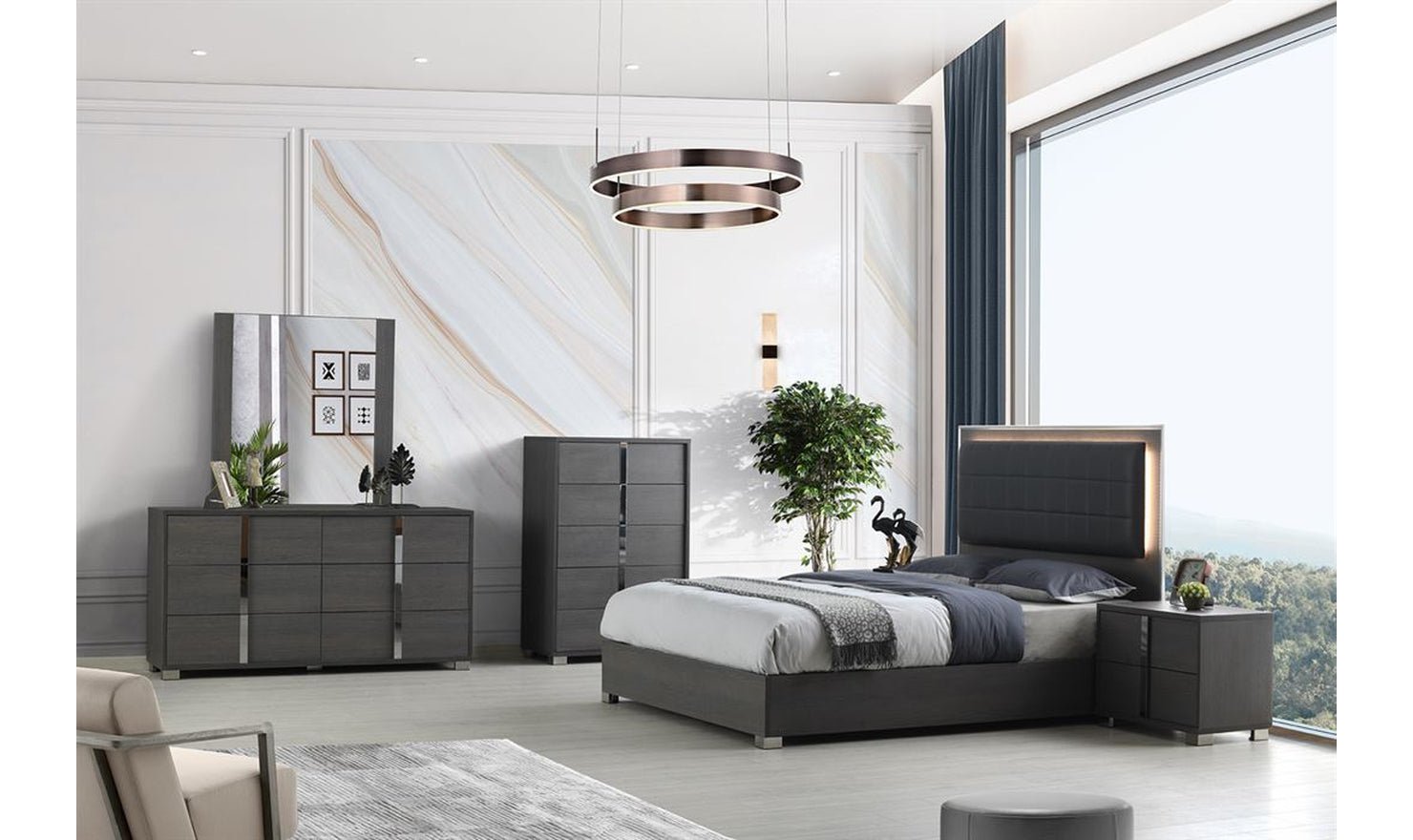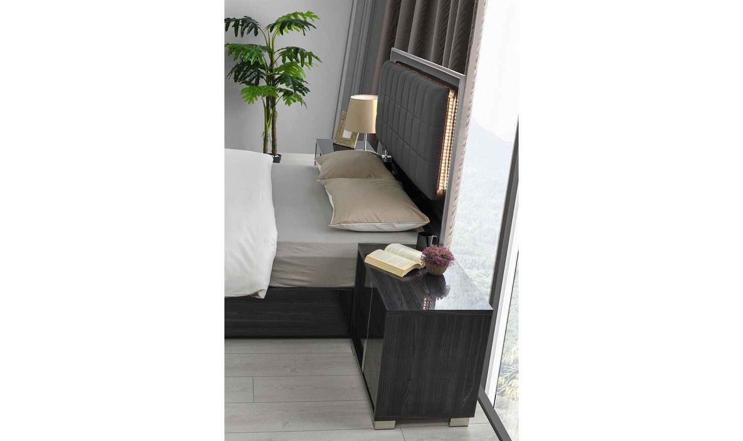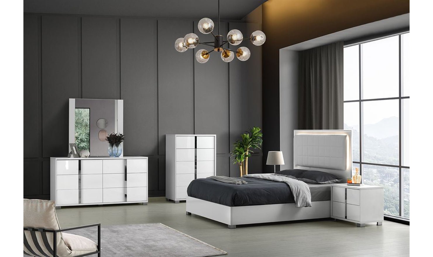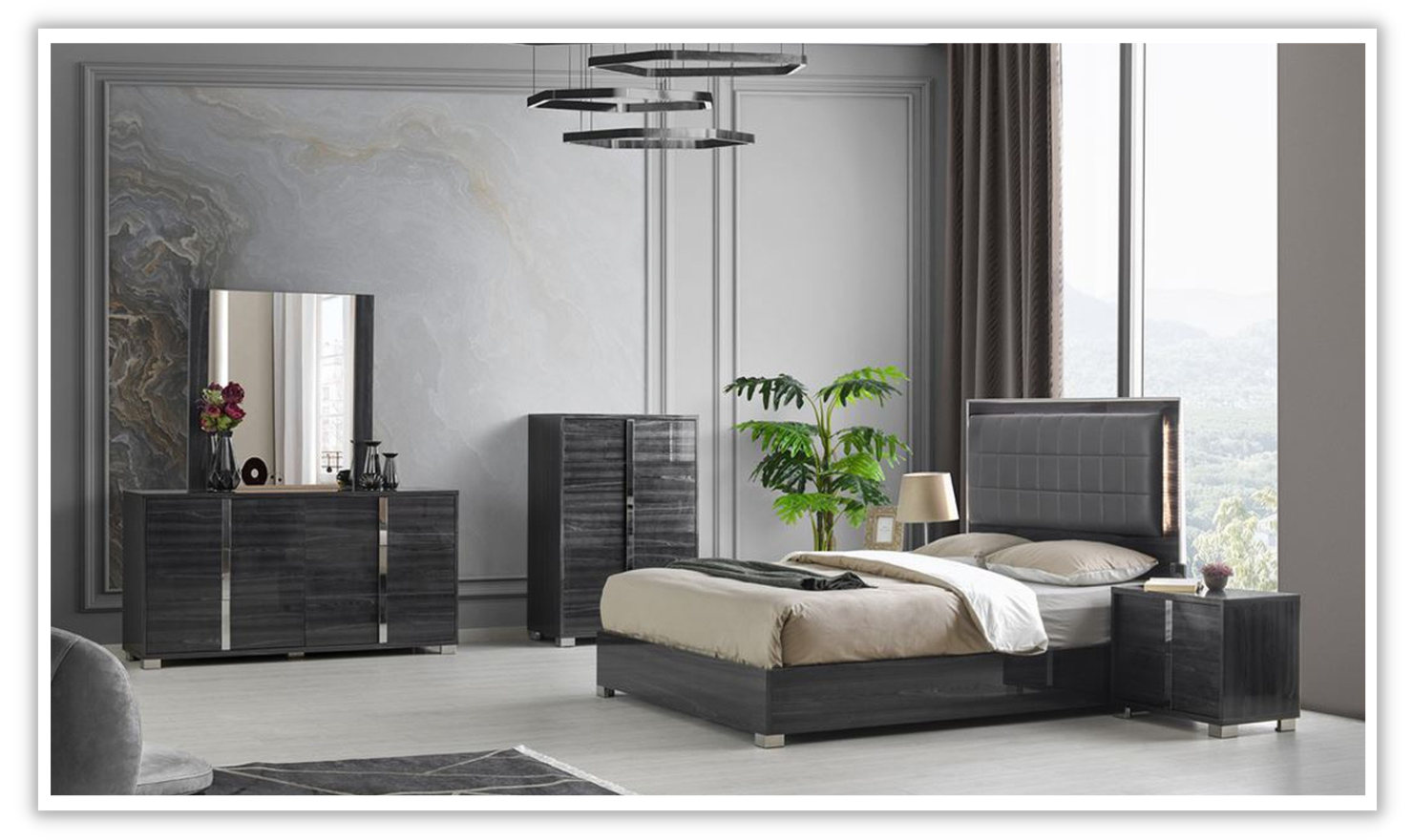 Jennifer Italia Saxe Platform Bed With Box-Tufted Headboard (King/Queen)