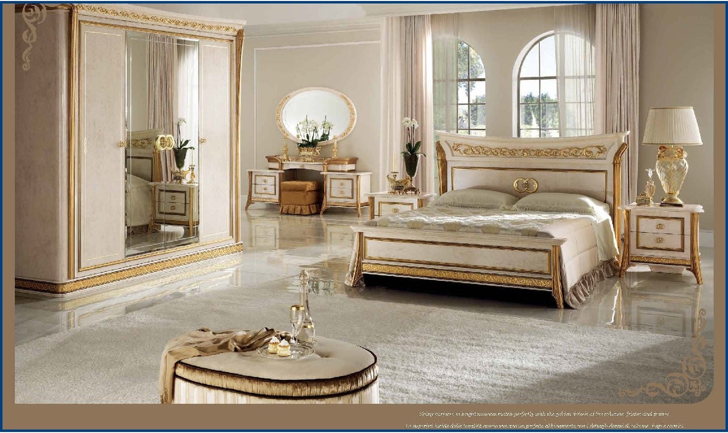 Melodia Beige Bed with Gold Carved Detailing