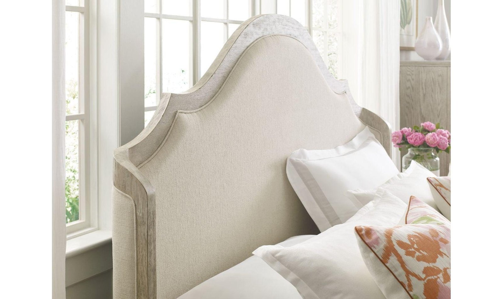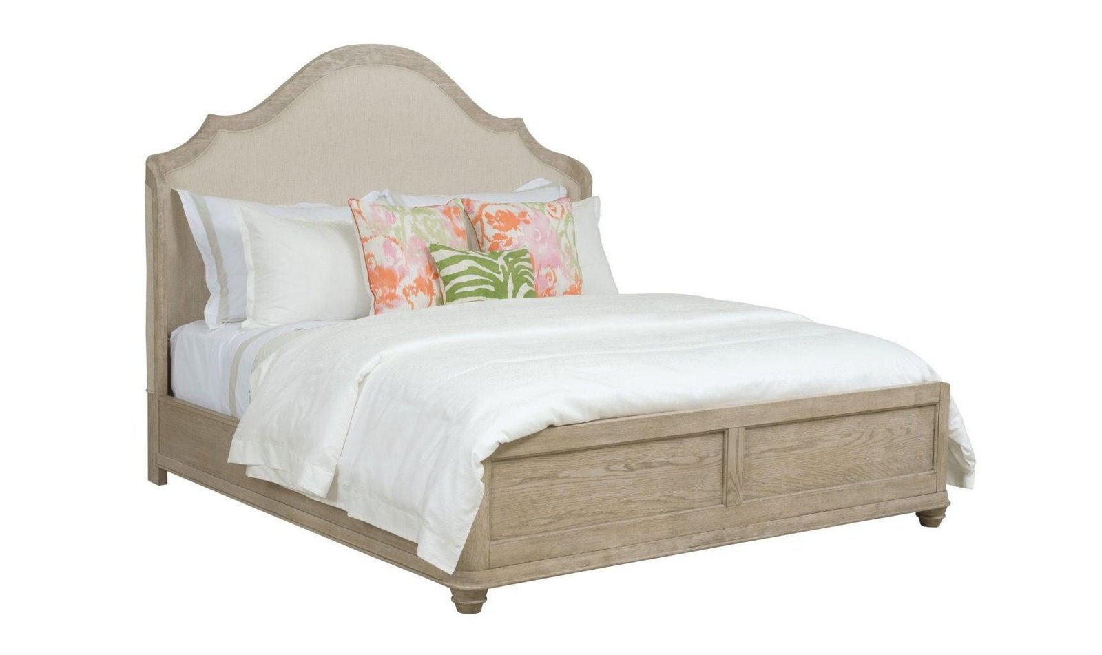 Curved winged king shelter bed is a beautiful combination of wood and performance upholstery fabric to create the perfect room setting. Also available in queen and California king sizes. Oyster Care & Cleaning/Care of Finish – Finishes are naturally resistant to minor everyday hazards or accidents, however, some precautions are necessary to maintain the beauty of wood furniture.